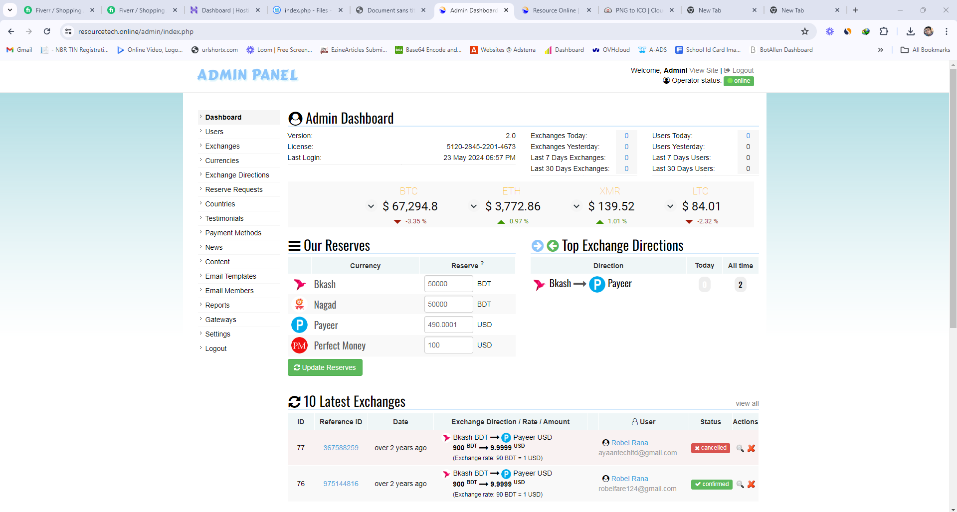 The Best Dollar Buy SELL PHP Script to make money exchanger website. It has wonderful features to exchange any currency and users can exchange their money. And It has lots of gateways like Paypal, Skrill, Neteller, Bitcoin, Perfect Money, Webmoney, etc. You can add custom gateways like Bkash, Rocket, Nagad, etc. If any customer wants to exchange their money he can exchange it easily. This is BitExchanger v2.0 PHP Script Modified Version.